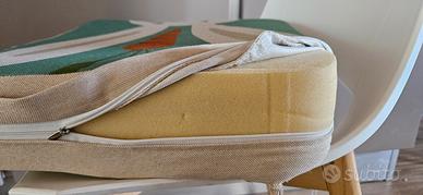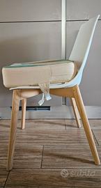 Rialzo per sedia, ideale per bimbi che passano dal seggiolone alla sedia normale, misure 40x40x10cm, interamente sfoderabile, tessuto cotone non delicato, interno morbido in gommapiuma, si lega sotto la sedia per renderlo stabile. Disegno unisex.