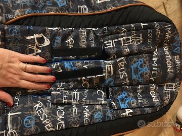 Si mette facilmente abbassando completamente lo schienale del passeggino, si appoggia sopra fissandolo con delle fettucce di velcro e diventa come una navicella morbida. Il sacco si puó usare anche da solo come lettino da viaggio o come fasciatoio appoggiandolo ovunque. È veramente versatile. D’estate è perfetto senza copertura, è fresco con le pareti basse e d’inverno tutto chiuso è molto caldo e confortevole. Perfetto per i primi mesi di vita del bambino.