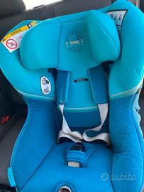 Entrata/uscita dall'auto agevolate e non dannose per schiena grazie al meccanismo 360°, riduttore per neonato rimovibile, poggiatesta regolabile, reclinabile con una sola mano, pratico ferma-cinture