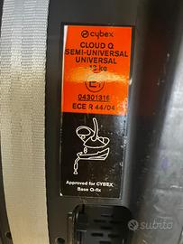 Cybex cloud Q + base Q ISOFIX. Il seggiolino è in condizioni accettabili, é incluso il riduttore neonato. Da zero a 13 kg. 🚗 é facilmente trasportabile e utilizzabile con cintura in caso non si possa portare la base Q 💤È reclinabile per poter far dormire il bambino in posizione ergonomica sdraiata 🚶🏻♀️➡️si può utilizzare al posto della navicella su molti passeggini incluso yo-yo babyzen Stokke con gli appositi adattatori. ☀️É stato pulito a fondo prima di essere messo in vendita 🫨 Ha il sistema di protezione LSP per ridurre del 25% gli impatti laterali (funzionano perfettamente entrambi i lati ma uno come si vede in foto ha un difetto estetico) Acquistato nel 2022 di seconda mano ( la persona da cui l’ho comprato mi ha detto di averlo usato pochissimi mesi perché la sua bimba era cresciuta in frettissima) ha i seguenti difetti ~ non ha più la parte rigida della tendina da sole 🌞 (protegge comunque bene, la parte rigida ce l’ho ma si è staccata, posso inviarla se riuscite a riattaccarla) ~ non ha più il gancio per allungare e accorciare il piede di fissaggio a terra (ultima foto), si può ordinare direttamente da Cybex come pezzo di ricambio ~non ha i cuscinetti della cintura (ne ho solo uno, non trovo l’altro). Adatto da 0 mesi fino ai 2 anni circa