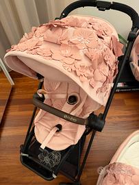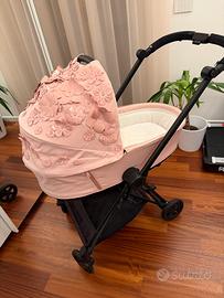Vendo splendido set Cybex Platinum Mios 3 Simply Flowers – Pale Blush, elegante e raro da trovare così completo. Il set comprende: •telaio Cybex Mios •seduta passeggino Simply Flowers Pale Blush •navicella Mios 3 Lux Carry Cot Simply Flowers Pale Blush •ovetto Cybex coordinato •borsa coordinata •accessori/adattatori visibili in foto Usato, in buone condizioni generali, con normali segni d’uso. Presenti segni di utilizzo sul telaio e usura sul maniglione, visibili in foto. Set molto bello dal vivo, compatto, pratico ed estremamente scenografico.