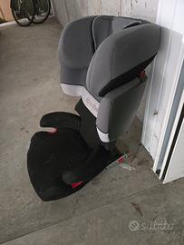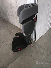 il seggiolino Solution X-Fix è dotato di poggiatesta reclinabile, protezione antiurto laterale, che offre una maggiore sicurezza in caso di impatto laterale. Il seggiolino è dotato di uno schienale reclinabile e di un comodo cuscino per sedersi. Si fissa al sedile dell'auto con la cintura di sicurezza e, eventualmente, con ISOFIX, di cui è provvisto