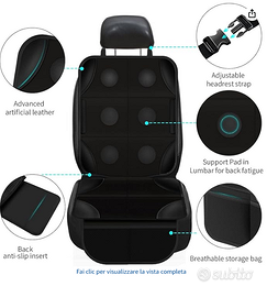 Schienale alto con protezione spalle e torace; schienale adattivo che segue l’inclinazione del sedile dell’auto.