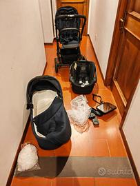 Trio composto di base, ovetto (più adattatori per base), carrozzina, passeggino, zanzariere, specchietto per macchina, libretti istruzioni. Solo consegna a mano Firenze