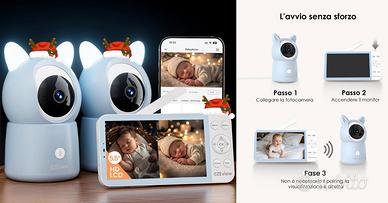 Questo baby monitor con visione notturna è dotato di una risoluzione HD 2K e di uno zoom 4x, Sia che lo usiate per monitorare il vostro bambino o la vostra casa, li vedrete con incredibile chiarezza. Lo schermo extra-large del baby monitor da 5,5” 720p visualizza immagini chiare con 5 volte più dettagli rispetto ai tradizionali baby monitor da 3,5” 480p. La batteria da 4000 mAh. Il baby monitor CZEview è dotato di rilevamento di movimento, pianto, suono, temperatura e umidità, nonché di un allarme in tempo reale. Ciò significa che non appena rileva un pianto del bambino o un tentativo di fuga dalla culla, invia immediatamente un allarme in tempo reale sullo schermo e sull'app. È inoltre possibile impostare la zona di rilevamento del movimento per evitare falsi allarmi. I sensori di temperatura e umidità assicurano che il bambino si trovi nel miglior ambiente possibile. Lo schermo LCD può ricevere segnali fino a 300 metri di distanza. Non sono necessari accoppiamenti, WiFi o app: le immagini in diretta della telecamera vengono visualizzate immediatamente dopo l'accensione. Il WiFi 2.4G è necessario per la prima connessione all'app, dopodiché la portata del segnale è illimitata. Entrambi i controlli sono compatibili con le chiamate bidirezionali. Che siate a casa o in viaggio, potrete sempre rimanere in contatto con il vostro bambino. Le orecchie della telecamera possono essere utilizzate come luce notturna. È possibile impostare il colore e la modalità di visualizzazione della luce notturna sul monitor e sul telefono cellulare e lasciare che la telecamera riproduca ninne nanne locali che possono aiutare il bambino ad addormentarsi. Ritiro a Milano disposto a spedire.