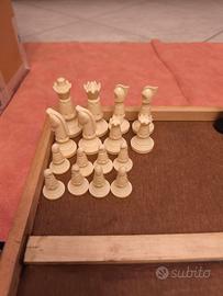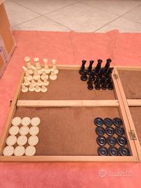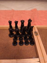 Gioco completo di tutte le pedine per la dama e pezzi per scacchi in plastica Contenitore originale in legno, apribile per contenere le pedine