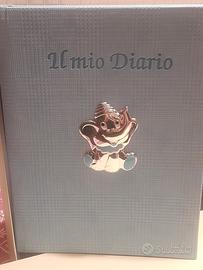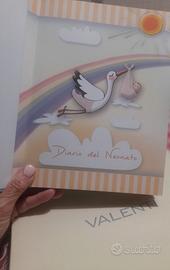 Diario del neonato in pelle celeste con applicazione in Argento bilamina 15 pagine per scrivere tutto sul bambino con spazi anche per le foto. completo di scatola regalo con scritta Valenti marchio made in Italy. nuovo mai usato 19 x 25 idea regalo!