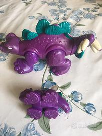 Dinosauro grande con bocca piedi e coda semovibile e uno piu’ piccolo anno 1997. Il grande anche se si vede poco ha una spina rotta Vds foto. Sono in plastica rigida