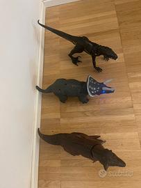 Vendo dinosauri giocattolo riprodotti nel film Jurassic World.