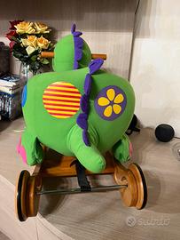 Cavallo a dondolo 2 in 1, può essere usato sia come dondolino oppure potete trainare il vostro bimbo quando è su perché ci sono le ruote.