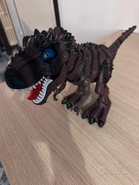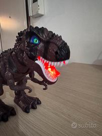 Dinosauro T-Rex gigante, con suoni, luci e nm movimenti. Funziona con batterie. Buone condizioni e perfettamente funzionante. Lunghezza 45 cm, altezza 25 cm