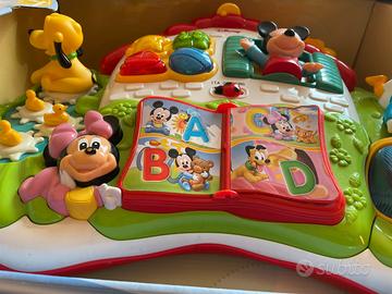 Gioco interattivo serie Disney baby by Clementoni, con suoni e luci. Presenta lettere, numeri, forme e colori per imparare giocando. Parla in italiano e in inglese. Per attivare le varie funzioni dovranno essere compiute azioni differenti, stimolando così la coordinazione manuale e sviluppando il rapporto causa-effetto. Staccato dalla scatola e usato solo due volte. Le gambe, removibili, non sono mai state montate e sono ancora incartate. Pile non incluse. Dimensioni della plancia 40×30 cm. Usato due volte, come nuovo. Conservato bella scatola originale. 12 mesi +.