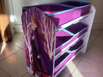 Disney Frozen Scaffale Munticontenitore Portagiochi, con scatole in tessuto amovibili e supporto in legno. Ritiro presso la Corte del Sole, Sestu.