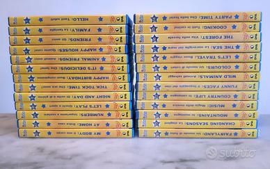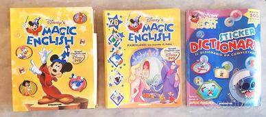 Opera completa 26 DVD Magic English DISNEY, corso di inglese per bambini collana edita da DeAgostini. Oltre ai 26 DVD sono compresi i 26 giornalini, con relativo foglio di adesivi, un raccoglitore, il libretto Sticker Dictionary con 500 adesivi da posizionare per completarlo.