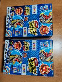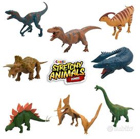 Il box espositore contiene 12 bustine con action figure dinosauri allungabili, con pelle elastica e imbottitura speciale, non appiccicosi