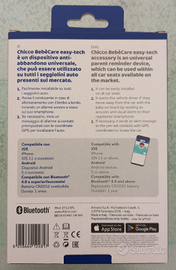 Chicco Bebè Care Easy Tech, dispositivo anti abbandono universale. Compatibile con sistemi iOS e Android. Utilizzabile con qualsiasi seggiolino auto. Confezione originale, batteria ancora funzionante. Usato, ottime condizioni.