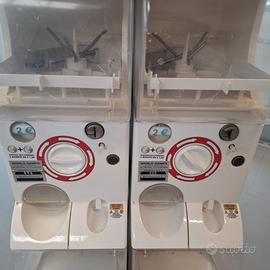 Distributori giapponesi per giocattoli; Il distributore e' composto da quattro scomparti che possono distribuire capsule da 1 Euro e 2 Euro. Più distributori si possono unire tra di loro formando una vetrina espositiva. Ingombro L 56,P 45,H 130. Disponibili 25 unità ; acquisto minimo 8 unità da quattro scomparti.