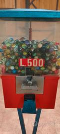 Distributore di palline d'epoca, ancora funzionante con le 500 lire. Pieno di palline di vetro, occhio e croce saranno 300 o più.