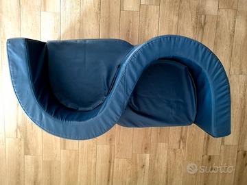 Divanetto doppia seduta per bambini, finta pelle blu lavabile (non sfoderabile). È in ottime condizioni, fa una gran scena. Misure: altezza 50, lunghezza 90, profondità 45. Ritiro a domicilio, eventuale consegna in zona trattabile.