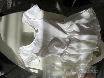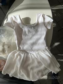 Body marchio Bloch in cotone, manica corta con gonnellino integrato in georgette colore bianco
