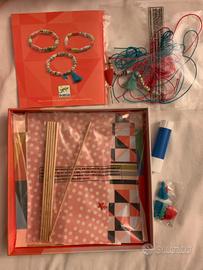 Gioco creativo per bambini per ideare e costruire braccialetti con fogli di carta colorati. Parzialmente usato come da foto ma ancora con tutti gli eletti per fare tanti altri braccialetti.