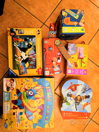Giochi per bebè e bambino, alcuni nuovi, altri con qualche tracce di utilizzo, chiedere per maggiori informazioni, vendo a metà del loro valore Fascia 6 mesi 24 mesi: - Palla di attività Ballerolla Sigikid da 6mesi in su; - Cubi magici Haba da 6 mesi in su; - hammer drum ball drop da 12 mesi in su - Angelini della Selecta da appendere a soffitto della cameretta; - Cubo magico in legno della Selecta made in Germany per inserire forme e recuperarle attraverso trabocchetti da 15 mesi in su; - puzzle in legno con 7 animali della Janad da 15 mesi in su; - puzzle con pomelli Ciuf Ciuf de Il Leccio da 15 mesi in su; - Maggiolone belbebe della Clementoni; - Chicco Danny Drift ricevuto come regalo, usato quasi mai, come nuovo, vendo completo di scatola ed istruzioni, da 2 anni in su; - Mattoncini Clemmy, Clementoni completo; - Fisher Price piccolo snoopy; - Fisher Price cagnolino parlante cdl24; - Djeco maxi chamboul - minibowling; - Goki puzzle legno orsetto. Playmobil -arca di noe portatile, -piccola ruspa 6775 con escavatore mobile, -City Life 5571 area scuola e guida asilo, Sapientino Clementoni: - Tappeto gigante interattivo Blaze le supermacchine. -Tanti Puzzle Djego, Ravensburger e Clementoni dai 2 ai 5 anni completi; -Gioco Dell'Oca Finding Dory (11178) della Clementoni; -Non ti arrabbiare, originale; -Ginello l'asinello (gioco della pignatta) ; -Ravensburger puzzle 3d sferico di Jurassic world con 72 pz; -Fermalibri della THUN. Tutti i giochi sono stati usati pochissimo e la maggior parte del tempo sono stati lasciati in armadio. Su alcuni giochi sono presenti qualche graffio ma tutti comunque funzionanti e completi nelle loro parti, alcuni anche con scatola originale. Vendo cadauno a metà del loro valore oppure in blocco a 140 euro (un terzo del loro valore) regalo a chi si prende tutto dei Peluche. Dispongo di ulteriori giochi per infanzia Ravensburger, Trudi, Hasbro, Thun, Brio, Clementoni, libri, peluche...