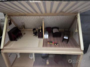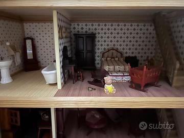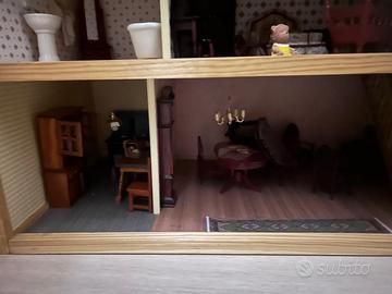 Casa delle bambole completa di arredamento, attrezzi ed accessori da giardino e 4 bamboline. Bellissima e utilizzata pochissimo, come nuova!