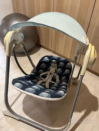 Sdraietta della Chicco. Meccanicamente funziona, ma non ha più il contenitore per le batterie che dava l’alimentazione. Quindi si può usarla solo come sdraietta statica, spingendola manualmente