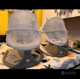 Vendo 2 dondolini kinderkraft elettrici usati 6 mesi compresi di rete antizanzare e giochini appesi.. Tasto per 5 angolazioni di movimento Tasto accensione/spegnimento Tasto play/pausa Tasto timer 8/15/30 minuti Tasto musica preimpostata Si puo connettere al Bluetooth per mettere la musica o rumori che si vuole Per bambini indicato fino a 9 kg/ 9 mesi Il tessuto e totalmente sfoderabile e lavabile in lavatrice… Vendo a 50 euro cadauno, se presi in coppia 80 euro Non spedisco solo consegna a mano