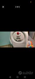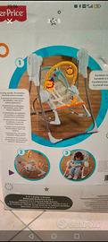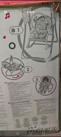 dondolino con suoni, melodie. 3 tipi di velocità. si può sganciare e appoggiare su un piano ed essere usato fino ai 3-4 anni come seggiolina/ dondolino.