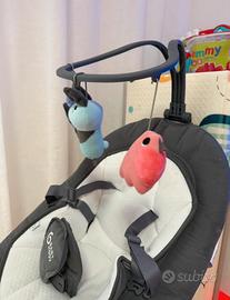 Vendo altalena elettrica per neonati, con 5 velocità di dondolio, seduta girevole a 360°, melodie rilassanti e barra giochi.