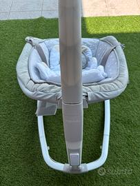 Dondolo carillon per bimbi fino ai 6 mesi in ottime condizioni dotato di cinture di sicurezza, funziona a batterie ed emette vibrazione e musica.