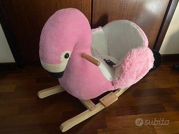 Dondolo in legno forma fenicottero rosa, come nuovo