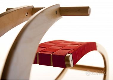 Dondolo in Legno Naturale per Bambini "Olga" di Sirch Nuovo Mai usato Nella sua scatola originale l Dondolo Olga di Sibis ha avuto Riconoscimenti ed è consigliato da Spiel Gut Dondolo per Bambini dal Design originale che oltre ad aiutare l'immaginazione del Tuo Bambino diventerà un bel complemento d'arredo per la Sua Cameretta. Ha una struttura in Legno Multistrato di Betulla curvato a vapore molto semplice e lineare nel disegno, ma al tempo stesso solida e robusta. La seduta è in Tessuto di alta qualità. Il Prodotto è studiato per poter essere utilizzato da Bambini da 12 a 48 mesi secondo quelle che sono le Normative Europee sulla Sicurezza dei Giocattoli. Come tutti i prodotti Sirch, il SIBIS Schorsch è certificato e testato TUV/GS e risponde alle Norme EN71 sulla Sicurezza dei Giocattoli. Tipo di materiale: legno multistrato di Betulla laminato Dimensioni: Lunghezza: cm. 76 Larghezza: cm. 27,5 Altezza: cm. 40 Altezza seduta: cm. 27 Peso: kg. 3,5