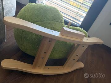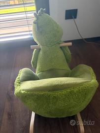 Dondolo in legno dinosauro. Con suoneria, batterie da cambiare.