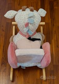 Dondolo Mucca adatto per bimbi da 10 a 36 mesi. Struttura ampia in legno con manici robusti. Tessuto lavabile.
