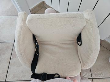 Progettato per un dondolio sicuro: ampia base in legno con poggiapiedi, cintura di sicurezza, sedile imbottito con braccioli e maniglie adatte a mani piccole