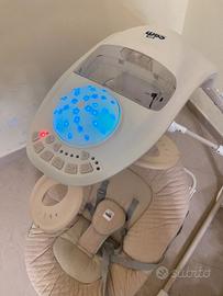 Vendo Gironanna Evo di Cam, l’altalena super accessoriata con luci, suoni e giostrina girevole, per stimolare i sensi del bambino ed intrattenerlo durante il momento del gioco, offrendo un’oscillazione a varie intensità, sia frontale che laterale, grazie alla seduta girevole. Sganciando la seduta, da altalena si trasforma in una classica sdraietta con movimento a dondolo, non più luci e suoni, ma una semplice seduta ultra soffice e reclinabile per poter sonnecchiare tranquillamente.
