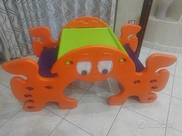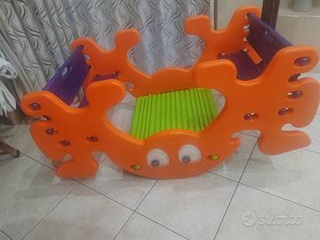 il gioco e come nuovo nn è mai stato usato e un dondolo che si può fare pure come tavolino e. un Bell gioco per bambini