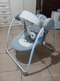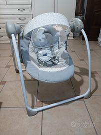 Altalena con movimento a dondolo automatizzato per cullare il bambino 5 escursioni di movimento per adeguarsi sia ai momenti di gioco che a quelli di relax. 12 melodie e suoni della natura per intrattenere il bambino. Seduta reclinabile in due posizioni, più sdraiata o più dritta, a seconda dello sviluppo fisico del bambino. Barra gioco con due morbidi peluche rimovibili. Struttura richiudibile e compatta,come nuovo, usato pochissimo . Consegna a mano