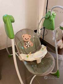 altalena con svariate melodie e velocità regolabile con timer per impostare la durata. Con giostrina rotante e alimentazione a corrente o a batterie.