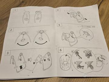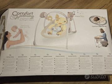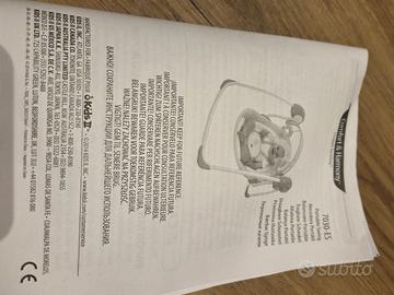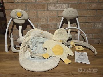Dondolo portatile con funzionamento elettrico silenzioso a 6 velocità. 3 rilassanti melodie, piano d'appoggio a forma di papera rimovibile con sostegno per la testa. aggancio regolabile a cinque punti. come nuovo usato pochissimo. scatola originale ben conservata.