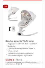 Vendo dondolo multifunzione kinderkraft per doppio regalo, usato soltanto due volte, multifunzione, 5 velocità e posizionabile in varie inclinazioni, tendina protettiva per gli insetti, musica incorporata, bluetooth per mettere la musica a tuo piacimento.. preferibile ritiro a mano