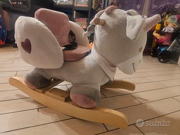 dondolo a forma di unicorno, molto morbido, unico difetto manopola destra morsa dal cane come in foto.