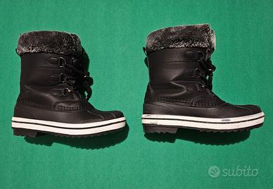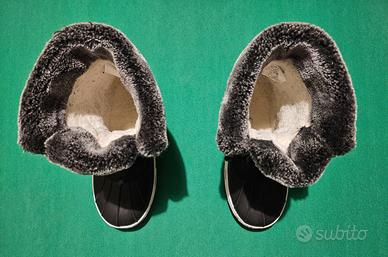 Taglia 35/36, unisex. Colore nero. Allacciatura rapida, fodera in pile. Leggermente macchiati di nero sul bordo bianco. Usati poco, in ottime condizioni.