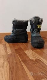 Scarponcini da neve per bambini Snow Commander NC1877 Sorel, Nero e grigio con dettagli gialli.