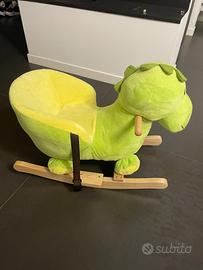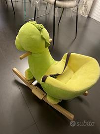 Dondolo morbido a forma di draghetto. Base in legno. Musicale. Con cintura di sicurezza.
