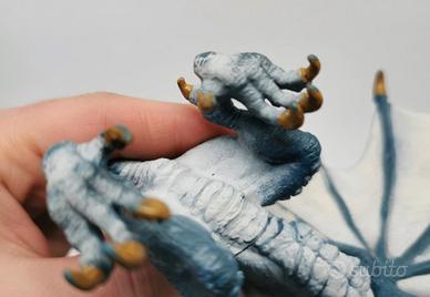Splendido esemplare di Drago delle Rocce/Corazzato della celebre marca tedesca Schleich (codice modello 70512), appartenente alla linea fantasy Eldrador. Il drago è caratterizzato da una colorazione blu intenso con dettagli in giallo ocra e ali color crema. Come da tradizione Schleich, la pittura è fatta a mano e i dettagli sono incredibilmente realistici. • Marca: Schleich • Condizioni: Ottime, come visibile in foto. Vernice ben conservata e struttura integra. • Dettagli: Ali ampie, cresta gialla e scaglie dettagliate. Sotto la pancia è presente il marchio autentico con l'anno di produzione (2014). • Dimensioni: Apertura alare di circa 20 cm (vedere foto con metro per i dettagli precisi). Un pezzo da collezione fuori produzione (retired), perfetto per completare la tua collezione Eldrador o come regalo per bambini che amano le creature mitologiche. Suggerimenti per la vendita: #Schleich #Eldrador #Dragon #Drago #Fantasy #Collectibles #Figurine #Monster #GiochiBambini
