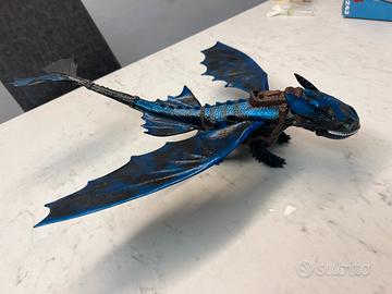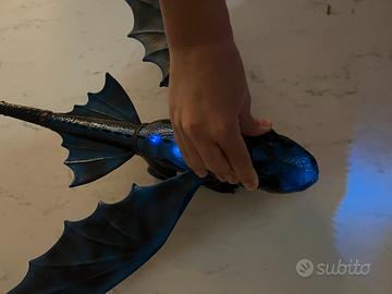 DRAGO DI 51 CM CON EFFETTI SPUTAFUOCO: Riempi d'acqua lo zaino sulla schiena di Sdentato utilizzando il contagocce inclusoPremi il pulsante dietro l'orecchio destro per attivare luci e sbuffi di fumo. Un orecchio leggermente rovinato