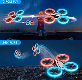 Led a forte intensità permetteranno di avere una chiara visione dei movimenti del drone, anche in zone buie, i para eliche consentiranno di evitare danni al drone e poterlo utilizzare appunto per allenarsi, senza timore dei danni.